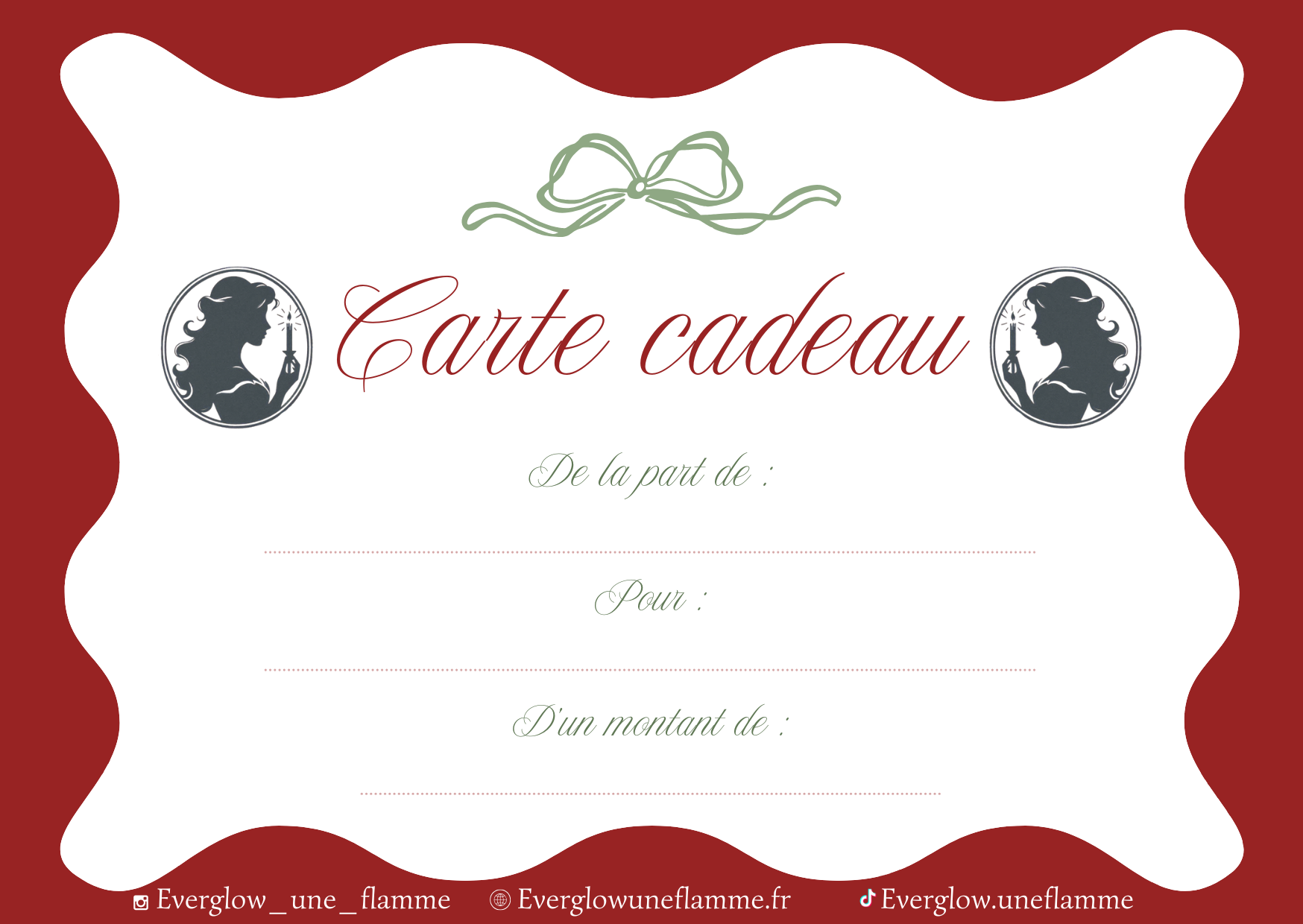 Faites plaisir à vos proches avec nos cartes cadeaux Everglow, disponibles en plusieurs montants pour s’adapter à toutes les occasions.