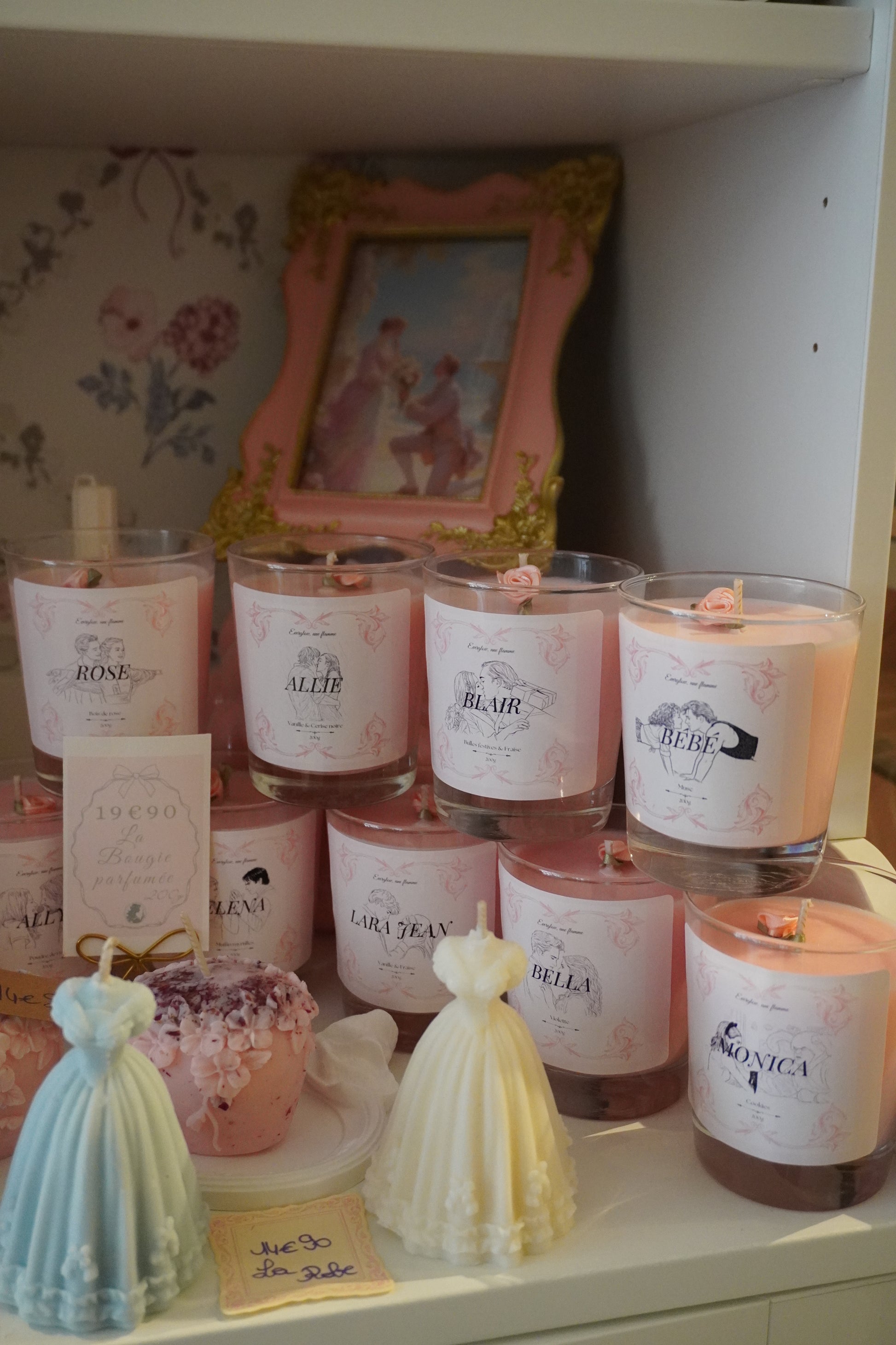 Chaque bougie est habillée d’un délicat rose romantique et ornée d’une petite rose en tissu, symbole d’un amour tendre et éternel.