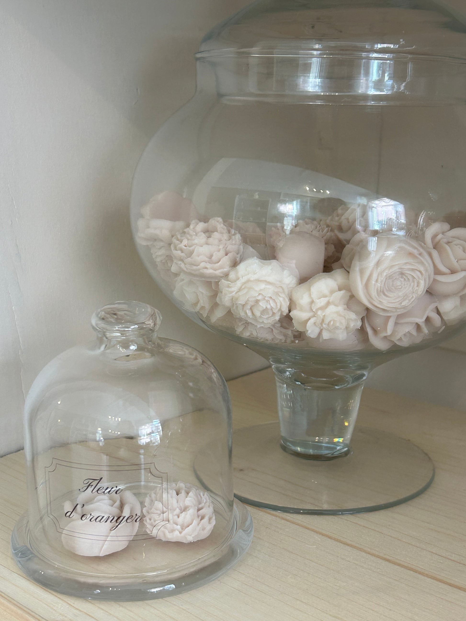 Ces fondants délicatement sculptés en forme de pivoines, roses et autres fleurs élégantes capturent toute la finesse d’un jardin en pleine floraison. Leur parfum envoûtant de fleur d’oranger embaume l’air d’une douceur suave et lumineuse, telle une promenade au crépuscule sous les orangers en fleurs. Un véritable bouquet olfactif à faire fondre, pour emplir votre intérieur d’une élégance florale et d’un charme intemporel.