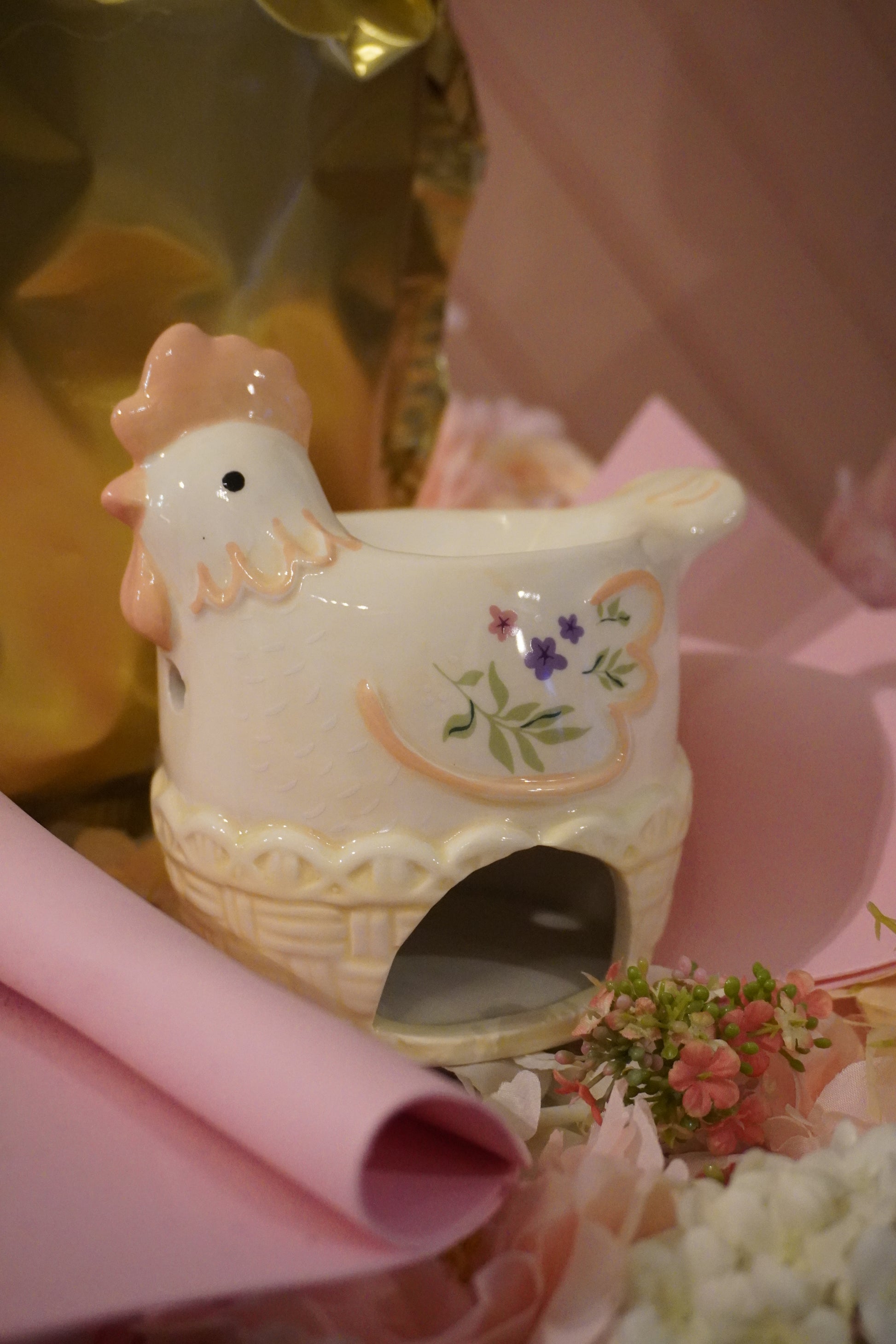 Apportez une touche de charme et de douceur à votre intérieur avec Mercotte, notre adorable brûleur de fondants en forme de poulette confortablement installée sur son panier. Ses tons blanc et pastel lui donnent une allure délicate et pleine de tendresse, parfaite pour une décoration cosy et poétique.